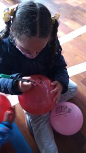 Eles usaram caixinhas de leite, palitos de picolé, tampinhas de garrafas, madeira, tinta, papel e cola para construir brinquedos especiais.